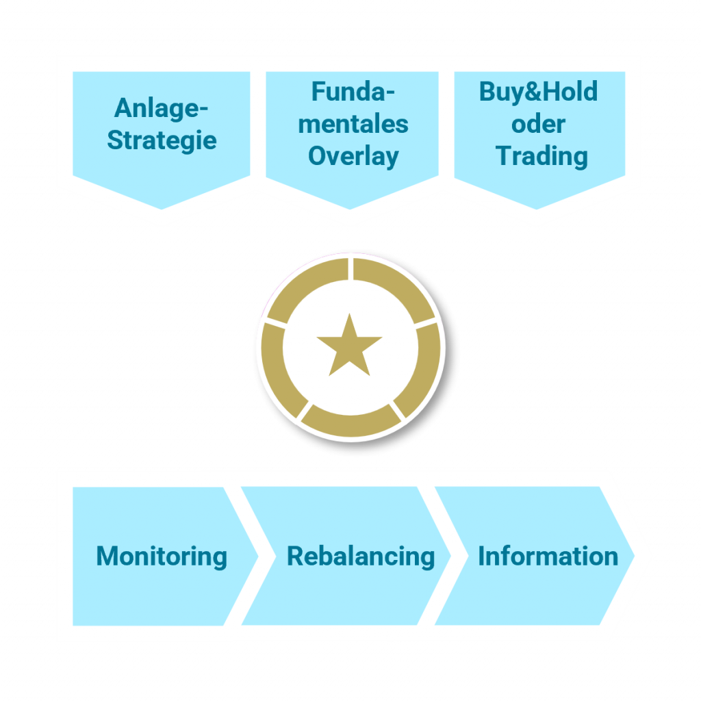 Zu Beginn definieren wir gemeinsam mit dem Kunden die passende Anlagestrategie – zum Beispiel mit Fokus auf höchste Attraktivität, Dividendenstärke, Wachstumsaktien oder nachhaltige Wertschöpfung. Ebenso werden zentrale Parameter wie die Anzahl der Aktien im Portfolio sowie die maximale Zahl an Umschichtungen pro Monat oder Jahr festgelegt.